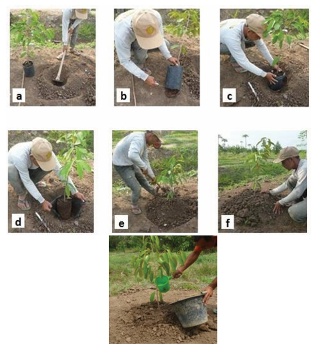 3. Masukan Tanaman durian ke lubang tanam dan tutup lubang dengan tanah.